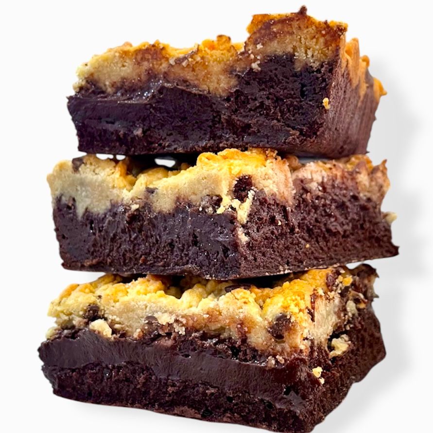 Nuestro Brookie es mitad brownie y mitad masa de galleta Choco Chips.